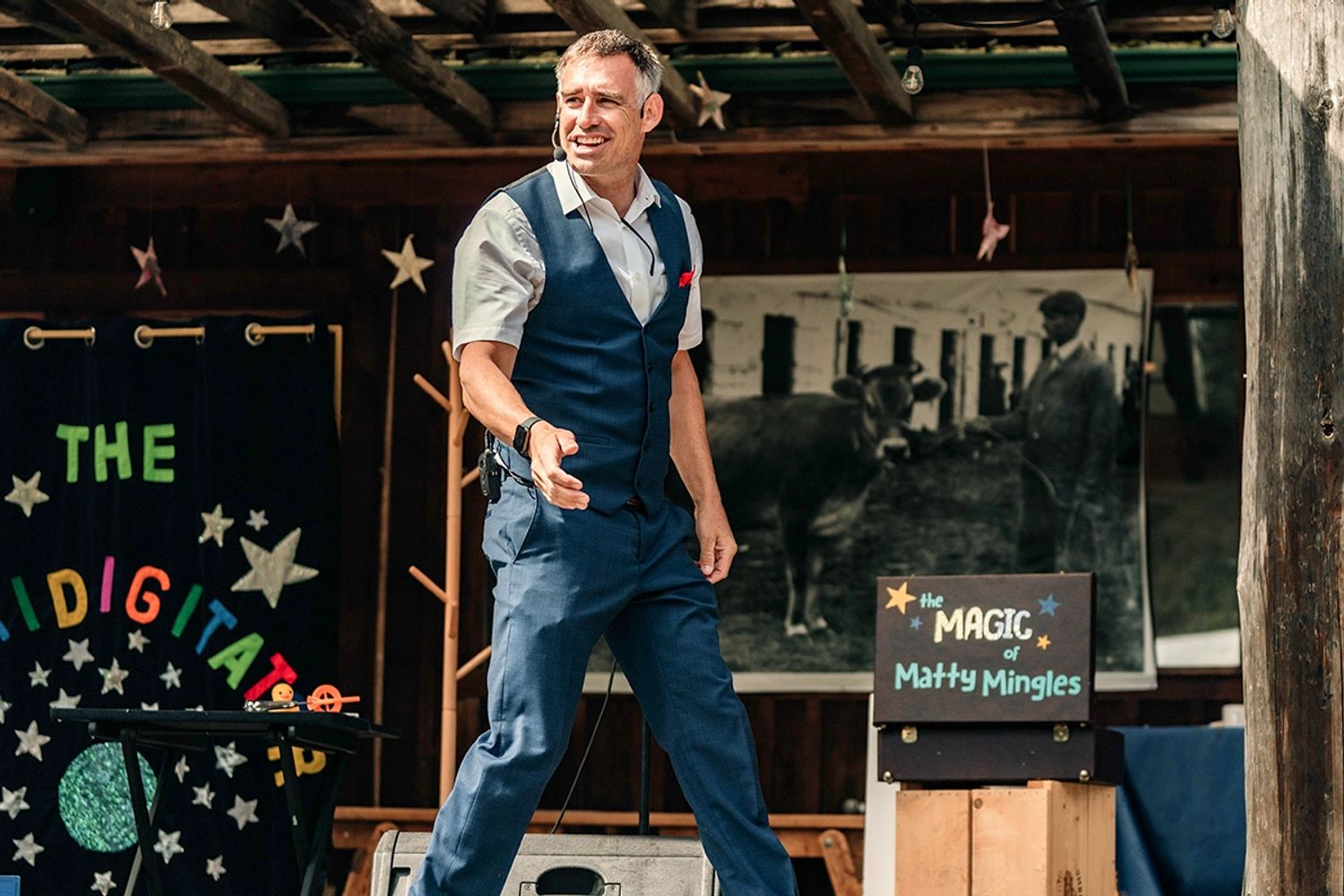 Matty Mingles doesn’t just perform incredible magic tricks and illusions—he create connections. Whether entertaining guests at a party or engaging a captivated audience, his goal is to bring people together through the shared joy of magic and comedy.